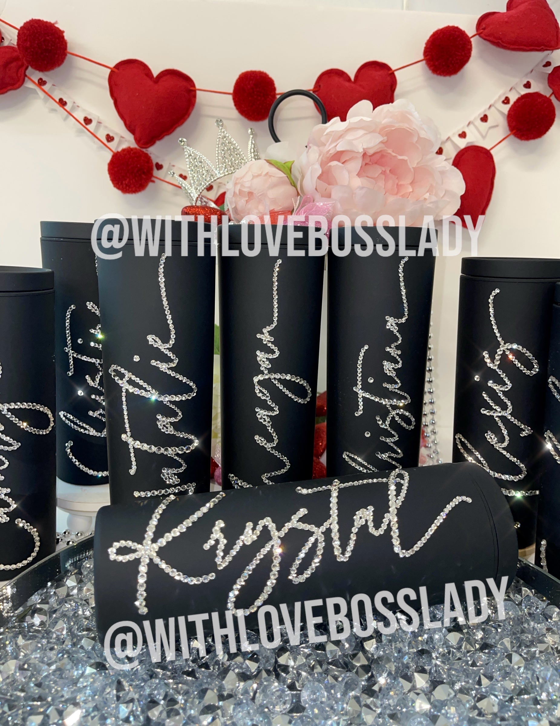 Give the gift of sparkle and practicality with our personalized rhinestone name tumbler. It's not only a thoughtful gesture but a stunning accessory that your friends, family, or bridesmaids will love and appreciate.