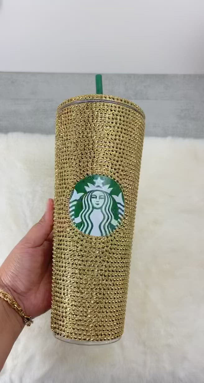 Starbucks Acrylic Tumbler with Gold Diamond Cut Crystals | Bedazzled Starbucks Cup