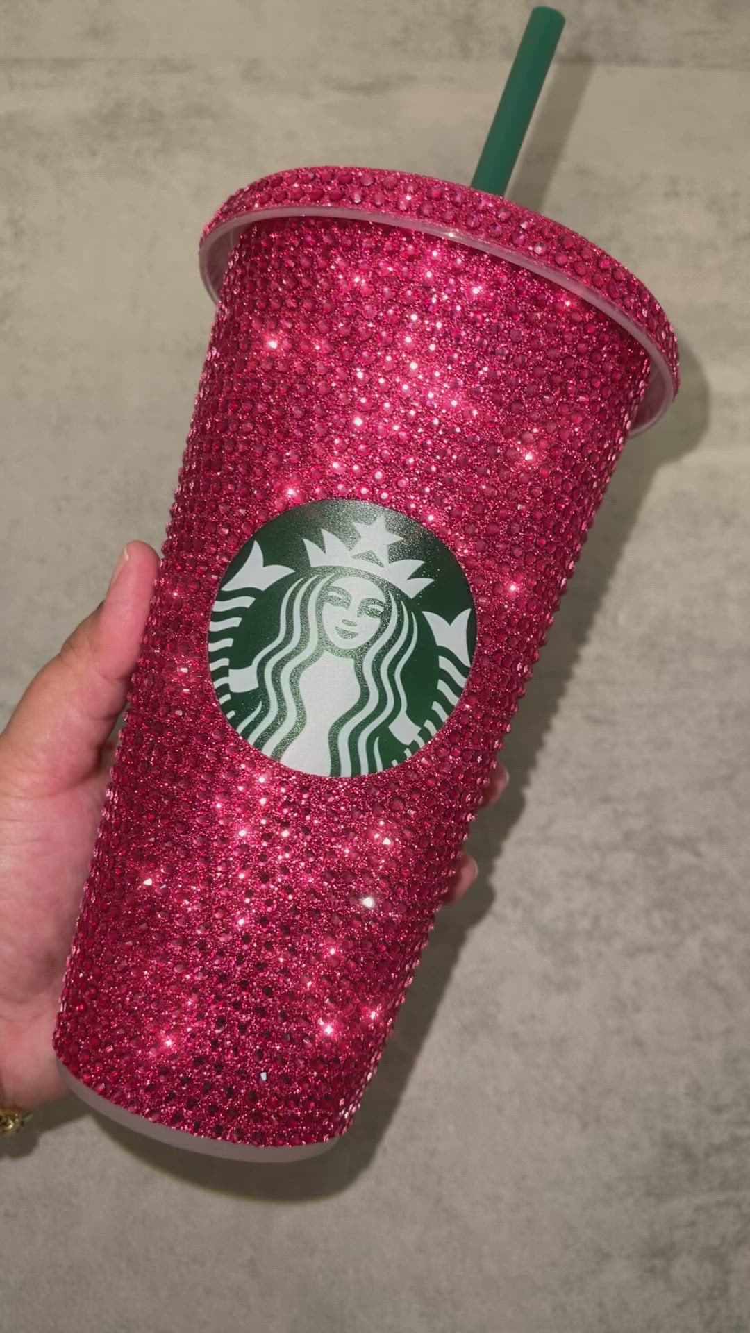 Starbucks Reusable Cold Cup Tumbler with Dark Pink Rose Crystals