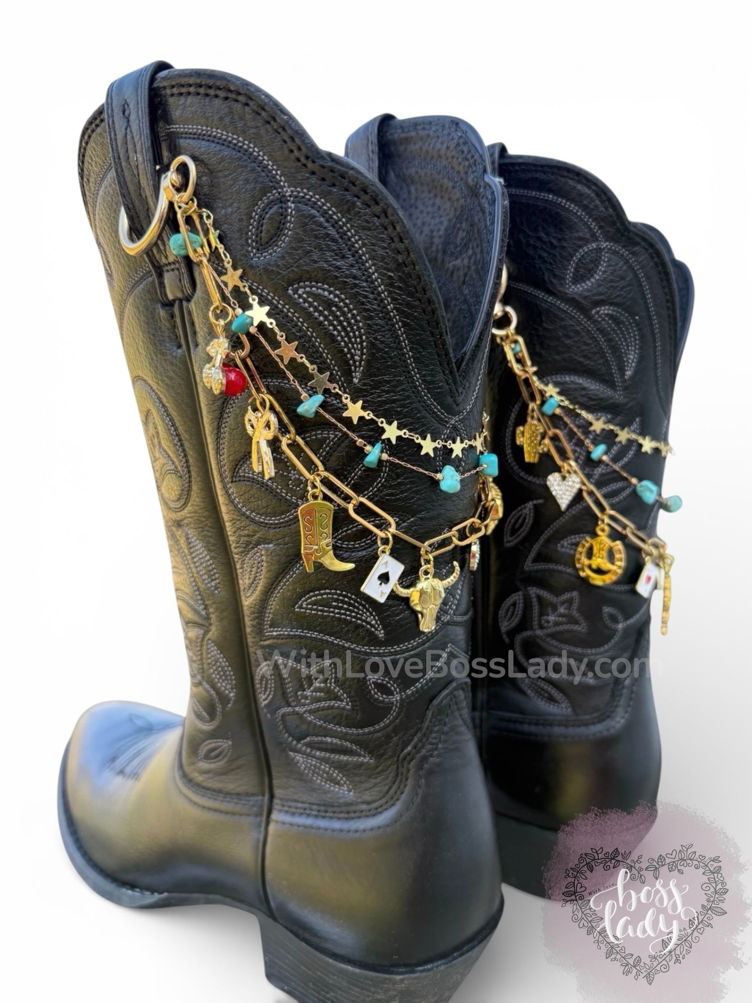 Due to the handmade and made-to-order nature of these western boot chains, all sales are final.